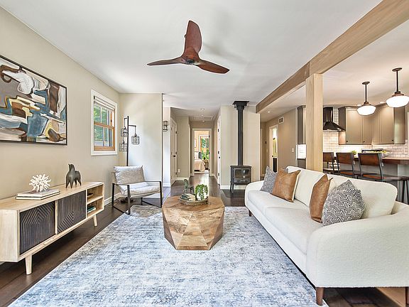 OFFERS DUE 6-2 AT 11PM This Old West Side bungalow rivals any downtown condo and with no fees! Remodeled to the studs in 2014-15 - new electrical, plumbing, insulation, metal roof, siding, flooring, kitchen, baths, and more. New large windows bring the outside in to a spacious open floor plan. Cooks will love the plentiful custom cabinets and counters. Serve guests at the black walnut island, hang out near the wood burning stove. The updated bath has subway tile and soaker tub, the powder room is also updated. The primary bedroom walks out to a private deck and fenced yard. The 1st floor laundry allows true one-level living. Space in the basement awaits your finish; the 2 driveways ensure off-street parking. Walk downtown, sled or play sand volleyball across the street at Slauson School.