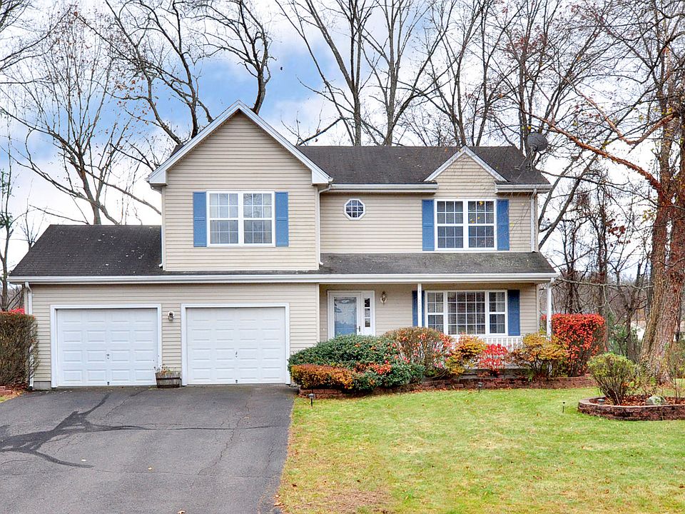 What a gem! A spectacular location, a quiet cul-de-sac, a covered front porch, and fabulous curb appeal combine to make this three-bedroom Colonial a very special home. The kitchen features rich oak cabinetry and countertops, gleaming stainless-steel appliances, a breakfast bar, pine plank flooring, a pantry and a dining room that invites conversation and intimate dining. With its sweeping wide-board pine flooring, the living room feels like a serene, sunlit oasis that is warm and filled with timeless natural charm. The dining room's wide-plank pine flooring radiates an alluring and natural elegance while its glass slider to the expansive deck creates a seamless flow between indoor dining and outdoor enjoyment. A half guest bath completes the main floor. On the upper level, you will find an expansive primary bedroom with an impressive (6' x 10') walk-in closet. Two additional bedrooms and a full bath round off the second level. Valuable features include low-maintenance vinyl siding, central air, thermal pane windows, and amazing wide-plank flooring. The deck, overlooking the scenic backyard, is perfect for peaceful relaxation and summer barbecues. This beautiful home is located near beautiful Windsor parks and the picturesque Rainbow Reservoir, ideal for kayaking, boating and water skiing, fishing and nature walks. With its charm and proximity to outdoor recreation, this home offers the perfect balance of suburban living and natural beauty. Come on...Let's take a look inside!