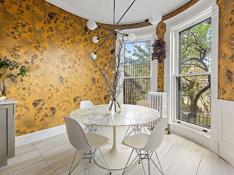 Originally built in 1860, this beautifully restored co-op spans two levels and opens directly to a lush, private garden oasis that borders the Brooklyn Heights Promenade. Framed by blooming trees and vine-covered walls, the outdoor space offers a tranquil escape with views that stretch toward the waterfront.