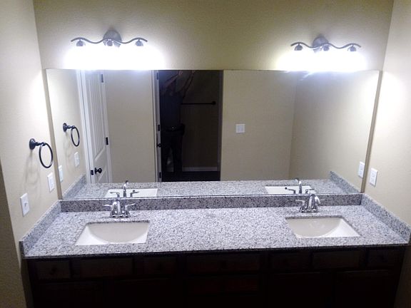 It has a split bedroom plan, a master bedroom walk in closet, 2 sinks in the master bath with a separate shower and toilet area, a full kitchen with a premium fridge with an ice maker, vinyl floors throughout, tall ceilings, recessed lighting, a lot, no an amazing amount of storage closet space including a pantry, a laundry room with more storage space and a counter to fold on (no machines provided), a garage with a remote, a front yard and a small deck with a private backyard.