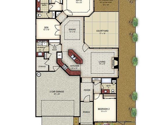 2+ Bedrooms & 2+ Bathrooms and 2-car Garage with 2,053 – 2,931 Square Feet depending on structural options. Private Outdoor Living Space: Private, outdoor courtyard; all-brick exteriors. No Maintenance. Interior Features: Gourmet Kitchen with granite counters and maple cabinets; Hardwood floors in the Foyer, Kitchen, Living Room and Dining Room; Ceramic tile in the Master Bath, Guest Bath and Laundry Room; Open Great Room design with lots of natural light; 33" gas fireplace with granite surround and mantel; Tray ceilings; Universal Design for accessibility Screened Porch: Optional Screened Porch off the Living Room