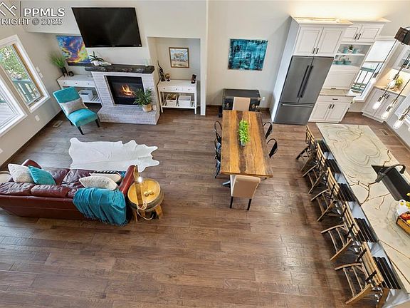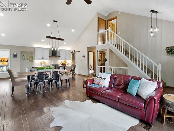 Elegant Woodland Park Home with Breathtaking Pikes Peak Views. Welcome to this stunning home in the desirable Crestwood Park neighborhood—perfectly located near schools, parks, and trails. Designed for both comfort and style, this home combines thoughtful upgrades with a functional open layout, perfect mountain living. Step into the vaulted great room, where expansive picture windows frame an unobstructed view of iconic Pikes Peak. The professionally designed gourmet kitchen is a true showpiece, featuring Bosch black stainless appliances, a recirculating hood, and drawer microwave. Blue Roma leather finished slab countertops with a 10-ft island, pull-out spice and appliance cabinets, dedicated coffee station, bronze touch faucet, and a walk-in pantry with barn door create the ultimate cooking and entertaining experience. This home offers two luxurious en-suite bedrooms. The spacious main-level suite boasts hand-scraped hickory floors, a private bath with walk-in shower, and its own entrance from the back deck. Upstairs, the second suite offers a spectacular Pikes Peak view, private bath with double vanity, and walk-in custom tile shower. The finished lower level includes two additional bedrooms with a shared bath, plus a large unfinished flex space—perfect for a home theater, office, gym, or guest kitchen. Enjoy Colorado’s outdoor lifestyle with the Lovell Gulch Trail right behind your home and the Centennial Trail, Manitou Lake, Crestwood Park, and the Woodland Aquatic Center all within walking distance. Downtown Woodland Park, Memorial Park, and excellent public and charter schools are just a few minutes away. Mueller State Park is a quick 20-minute drive, Colorado Springs only 30 minutes, and world-class skiing less than two hours from your doorstep. Whether as your full-time residence or a lucrative rental, this home offers the perfect balance of mountain serenity, modern convenience, and unbeatable location. Call today to schedule your private showing.