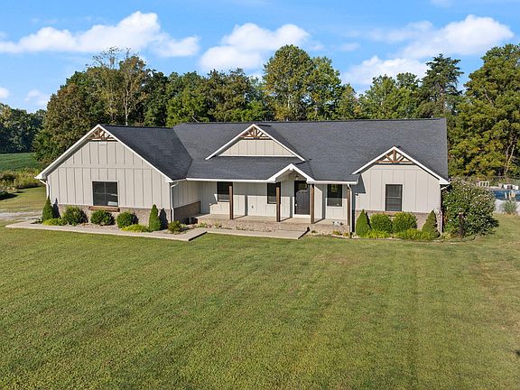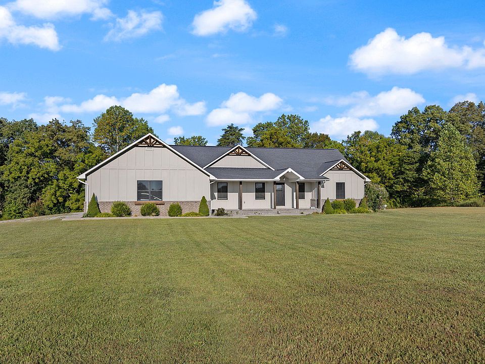 Here you go - Now offering this stunning 6-year-old custom that home rests on one of the most private and picturesque 10-acre tracts in the region! This home, crafted in 2019, is surrounded by beautiful farmland and bordered by a wooded tree-line. It's a true retreat, offering the peace and quiet of country living while being just minutes from Lake Cumberland, Somerset, and Russell Springs. The exterior of this homestead was designed for endurance with stately brick and James Hardie Board siding, ensuring low maintenance and timeless curb appeal. Step inside to an executive foyer that leads into the vaulted living room filled with natural light, anchored by the centerpiece gas fireplace. The custom kitchen features a cooktop, wall oven, and upgraded finishes—perfect for hosting family and friends. The private master wing offers serene views of the property, while the secondary bedrooms are all generously sized. Downstairs, a poured concrete basement with soaring 10-ft ceilings full with possibilities, complete with an engineered storm vault/safe for peace of mind for your family! Both gas and wood-burning fireplaces bring warmth and charm throughout the home. This is more than a house—it's a generational opportunity. Whether you envision quiet mornings watching wildlife, evenings by the fire, or weekends boating on the lake, this property offers it all: privacy, space, and unmatched quality, in one of the most sought-after locations near Lake Cumberland.