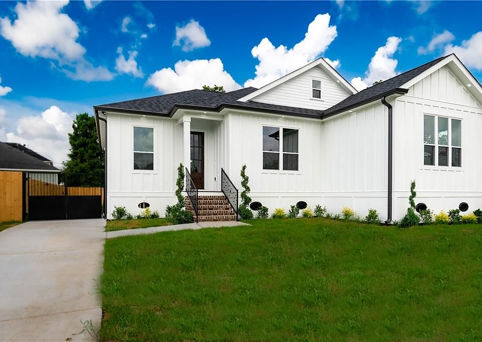Custom features throughout, spacious & charming new construction home in lovely Arabi! New construction with character! Designer finishes, exceptional crown molding, & 10-ft and higher ceilings. Backyard oasis with oversized patio and porch ready for fall time entertaining. Features custom living room built-ins with cabinet storage. This property has 4 spadiceous bedrooms and office. Primary bedroom with en suite w/soaking tub and rainfall shower! Large closets & ample storage, & an office/sunroom! Make it yours today!