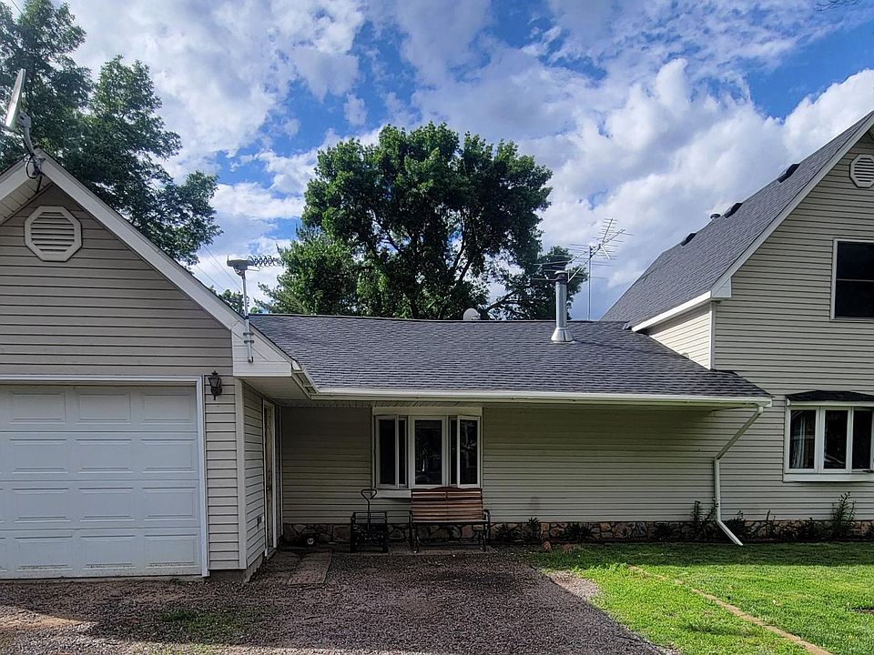 Incredible opportunity to own this charming home located on a corner lot in Biscay between Glencoe and Hutchinson! Enjoy this 2 bedroom, 1 bath home with ample yard and garage space! Improvements include full roof replacement in 2023, newer appliances, replaced carpet in the upper level and lower-level AC unit purchased in 2023! Located near parks and so much more! Must see today!