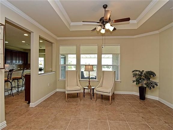 Beautiful golf course view on hole #17 of Cowan Creek with the back facing East! This Chamberlain (DeLeon) floor plan boasts a whopping 2872 Sq. Ft. Four bdrms (or 3 bed/flex room) and 2-1/2 baths with large office. Tray ceilings in Living and Master Bedroom. Cherry cabinets upgrade throughout. Insulated garage and overhead door. Kitchen offers granite, under cabinet lighting and cabinet pull outs. SS + refrigerator. Roof-2013. Full fenced yard. Garage is tandem on one side. Water feature does not convey.