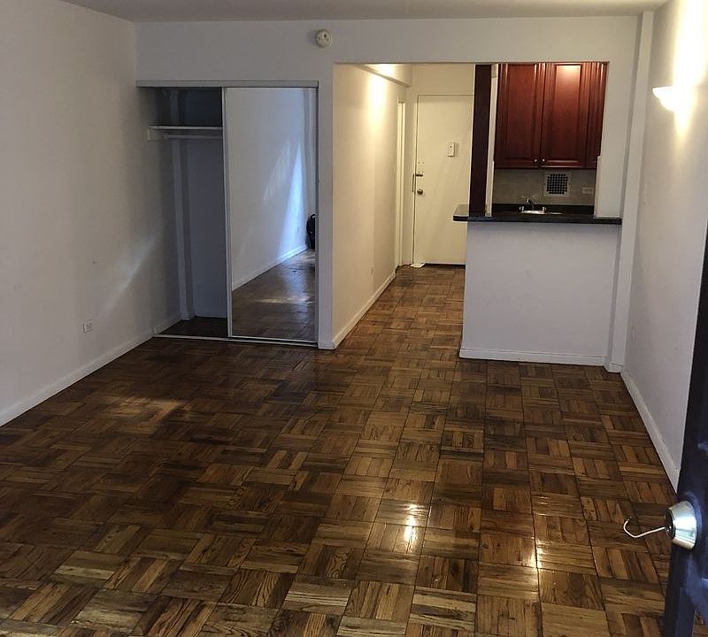Newly renovated studio apartment in an elevator building. The apartment features stainless steel appliances along with private outdoor space. The building features a laundry room and dry-cleaning service. -Large Studio. -Sunny Living Room with access to private deck -Can Fit a Queen Sized Bed and more Space to spare. -Renovated Kitchen with Cherry Wood Cabinets. -Renovated tiled Bathroom, Newly Finished Wood Floor. -Lots of closets space -Well Maintained Elevator Building, Laundry, Live-In Super