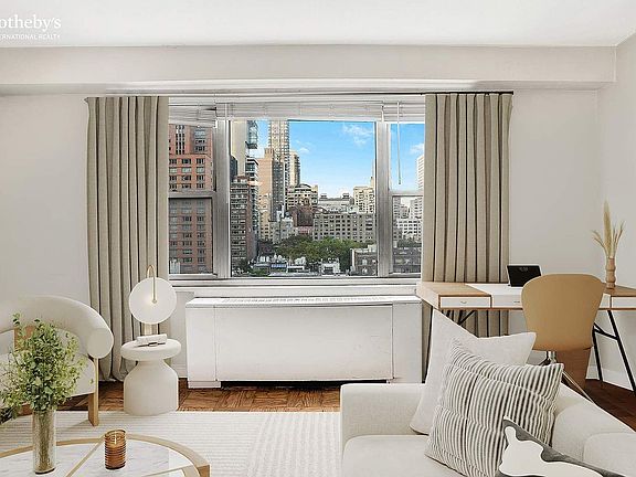 Perched on the 11th floor, this extra-large alcove studio offers a rare combination of light, views, and intelligent design. Oversized north-facing windows flood the home with natural light and showcase an open city vista a beautiful perspective that captures the energy of Midtown while remaining calm and private above it all.
