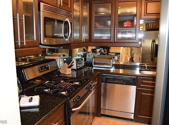 Fully furnished luxury condo with partial Strip and Sphere views, just minutes from the Las Vegas Strip. Features include new luxury vinyl flooring in the bedroom, stone flooring throughout, granite countertops, stainless steel appliances, and an in-unit washer/dryer. The covered patio features city and Strip views, or enjoy the amenities of a lush 16-acre resort-style community offering, cobble stone and walk paths around the property, two pools (main pool heated in the winter time), spa, gym, sauna, and courts for tennis, pickle-ball, and racquetball. Poolside cabanas, BBQ areas, and 24-hour access to most amenities provide the perfect mix of comfort and convenience, all just 1.5 blocks from the Strip.
