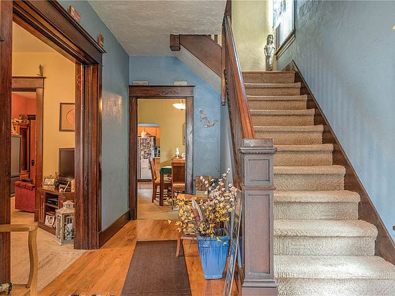 Great 3 bedroom home centrally located. This home enters into a spacious foyer. Main level features formal living room thats open to additional den/family room. Opposite the entry is a formal dining room that leads to the spacious eat in kitchen. Upstairs you'll find 3 bedrooms with lots of space and a full bathroom. Also additional finished room upstairs could be 4th bedroom. Home also has newer windows and hardwood floors. Outside this house features an inviting covered front porch, great useable yard and a 2 car detached garage. Garage also has electric, water and additional storage loft. Don't miss this great house!