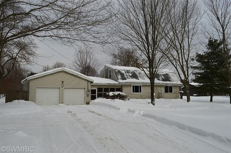 Cuddle up to the warmth of the wood burning stove in this 3 bedroom home that is situated on over 6 acres of land with fruit trees and gardens. A 30 x 40 ft pole barn is equipped with two 10 x 10 slider doors, concrete floor and 220 electric at the work bench area. Home offers a 3 season enclosed porch at the front of the home a 2 stall garage that leads to the mudroom and hot tub. Eat-in kitchen offers a large center island that adds additional drawers / cupboards and shelving along with a pantry and sliders that lead to the backyard. Main floor master bedroom has large closet with additional storage underneath stairs and 2 additional bedrooms on the second floor.