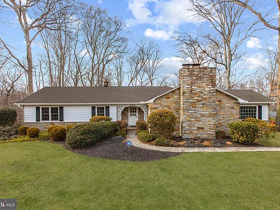 Large stone front/vinyl siding rancher in Bel Air. Quiet neighborhood in Worthington Heights conveniently located a few minutes to downtown Bel Air. This spacious home is perfect for main living lifestyle: living Room with built-ins, wood burn stone fireplace, dining room with access to all year round sunroom and upper deck/balcony, eat-in kitchen with lots of cabinetry, counter space, pantry and laundry closet, primary bedroom with walk-in and cedar lined closet, sitting room with exposed wood beams and double ensuite bath featuring walk-in shower, separate shower/jetted tub, single vanity and additional makeup vanity, 3 additional bedrooms, and one full bathroom. Lower level offers a large rec room with stone wood burn fireplace and wet bar, game room, bonus room and the third full bathroom of the home. Additional storage in the unfinished utility room with lots of wood shelves and storage closets. Two points of entry from oversize integral garage from rec room and game room with chair lift. Huge workshop with workbench and shelving adjacent to garage. Front lawn has low maintenance landscaping and lots of curb appeal. Property sits on 0.63 acres.