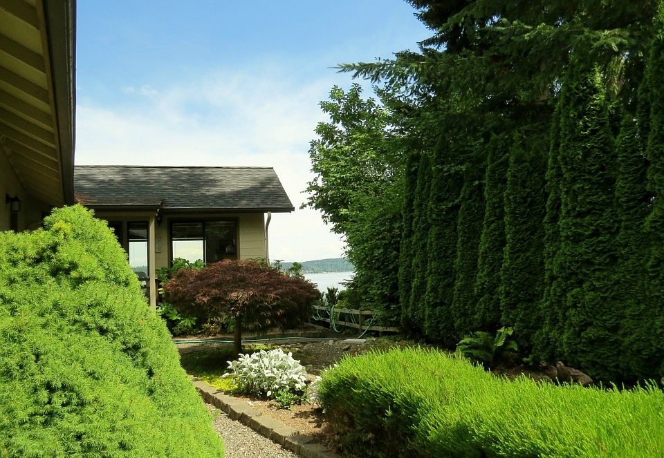 Stretch Island Hide-a-way, Salt Waterfront Home! End of Road privacy, Views of Case Inlet and Mt. Rainier. Open concept living spaces, dining room, hardwood floors, updated kitchen, wood stove. Master Suite with views, deck and walk-in closet. Second Bedroom on the main with full bath. Two car attached garage, shop area, extra storage, utility room. 2013 new Roof, appliances stay. Bulk head frontage, nearby stair Beach Access. Square footage +/-, quality remodel. Quaint, private community.