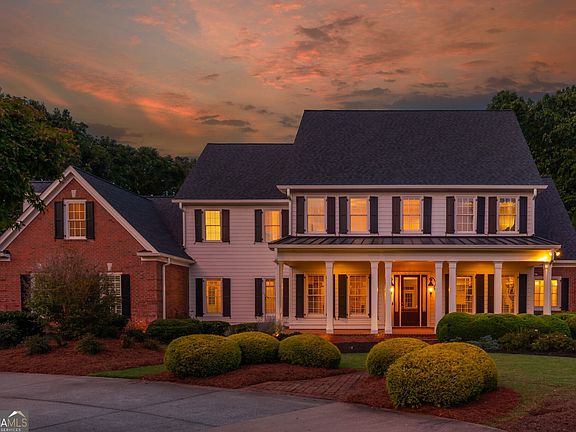 Experience timeless elegance and serene living in this custom-built estate by award-winning Chatham Homes, set on 2.5 acres in the exclusive Shoals at Arbor Hill community. This 6-bedroom, 6.5-bath residence showcases refined craftsmanship and luxurious details throughout. A welcoming Southern porch and dramatic two-story foyer lead to a large dining room with exquisite architectural accents. The living room features a coffered ceiling, built-ins, and French doors opening to a spacious deck overlooking the private backyard. Additional highlights include a butler's pantry, laundry room with office space, and abundant storage. The gourmet kitchen is the heart of the home, offering stainless steel appliances, custom cabinetry, an oversized island, and expansive counters, flowing seamlessly into a bright keeping room with fireplace. The main-level owner's suite is a private retreat with fireplace, sitting area, dual walk-ins, and a spa bath with soaking tub, dual vanities, and walk-in shower. Upstairs are four en-suite bedrooms, each with a walk-in closet. Enjoy outdoor living from the covered porch or terrace level, complete with bedroom suite, kitchenette, recreation space, and storage. The grounds feature a French-style garden, koi pond, stone fire pit, and custom stream with waterfalls. Adding to its appeal, The Shoals at Arbor Hill is an equestrian-friendly community, allowing horses on property with HOA approval -a rare lifestyle opportunity. Minutes from shopping, dining, and top-rated schools, this home offers unmatched luxury, privacy, and serenity. Welcome Home.