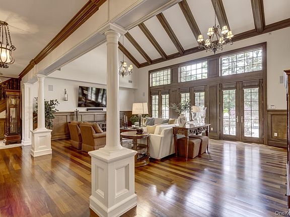 Step into the impressive foyer featuring radiant heated marble floors, a sweeping grand staircase, and soaring cathedral ceilings. The main level includes a formal living room with fireplace, a sophisticated library with fireplace, and a banquet-sized dining room ideal for entertaining. The chef’s kitchen, equipped with top-of-the-line appliances, opens to an expansive family room with fireplace, vaulted ceilings, and French doors leading to your private backyard oasis. A first-floor guest suite offers a full bath, sitting area, and private entrance—perfect for visitors or extended stays.