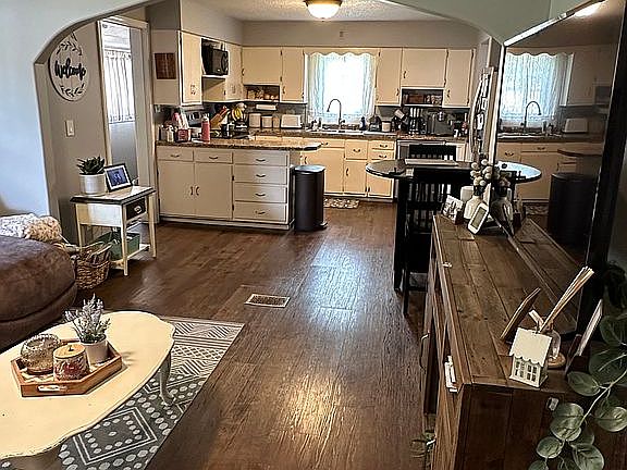 Many updates have been made to this home within the last 5 years including but not limited to: All appliances (microwave, dishwasher, oven, washer and dryer, fridge) New water heater 2018 Functioning water softener system Updated plumbing Updated and leveled the flooring throughout home Had all rooms professionally painted (2 within last 4 months) Landscaped and added established non-fruit bearing trees to the backyard Updated all light fixtures and installed ceiling fans in the two largest bedrooms Installed maintenance free privacy fence with large gate for alley access and a gate between home and detached garage Several updated windows throughout the home Home will come with Nest thermostat and Ring security cameras. Property also features a small shed in addition to the detached garage with loft storage above. Functional central air system with recently replaced motor (Summer 2023) Heating can be easily switched between electric and propane for owners seasonal preference Metal roof on the house and asphalt shingles on the garage.