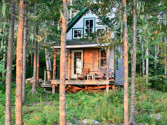 Large waterfront lot with deep water on Blue Hill Bay. Driveway already in and a beautiful, seasonal cabin to use while building your dream house. Stairs to shore and panoramic views to Long Island and Mount Desert Island.