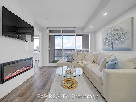 Welcome to this beautifully maintained 2-bedroom, 2-bath suite in the well-regarded Tuscany Gate community, offering open, unobstructed views and a rare sense of privacy. Thoughtfully designed and filled with natural light, this inviting home features a functional open-concept layout that connects the living and dining areas to a fully upgraded kitchen with quartz waterfall countertops, stainless steel appliances, and modern lighting. The living space is enhanced by an elegant electric fireplace, creating a warm and comfortable atmosphere for everyday living or relaxed evenings at home. Freshly painted with laminate flooring throughout, the suite also offers remote-controlled zebra blackout blinds and a private balcony perfect for enjoying morning coffee or quiet sunsets. The primary bedroom includes a walk-in closet and ensuite bath, while the second bedroom provides flexibility for guests, family, or a home office. Residents enjoy access to excellent amenities including outdoor pool with cabana, gym, yoga room, party room, games lounge, playground, car wash, security, and visitor parking. Conveniently located close to transit, LRT, Square One, shopping, groceries, major highways, and Pearson Airport. Includes 1 underground parking and 1 locker. A comfortable, stylish home offering privacy, convenience, and everyday ease for a Great Price!