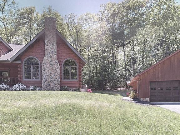 Log home in a country setting nestled among the tree's. 3 bedrooms, 2 full baths. Open concept floor plan. Wood floors, custom kitchen with island, Primary Suite, Loft Area, open staircase. Covered front porch and rear deck to enjoy and relax. Detached oversized garage with extra space. Unfinished basement.