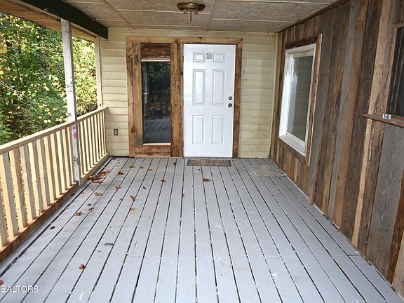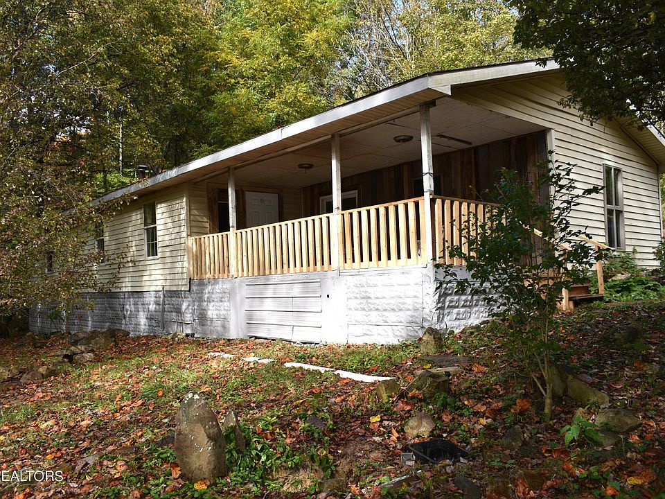 Manufactured home sits on permanent foundation. The home has 2 bedrooms and 2 bathrooms and another large room that could also be used as a bedroom. It also features a covered front porch and deck.