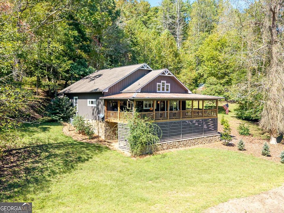 Your Dream Creekside Cabin Retreat Awaits You! Welcome home to this one-of-a-kind cabin tucked along the sparkling,trout-filled waters of Hanging Dog Creek! Set on nearly five peaceful acres, this special offers a mix of privacy, comfort, and mountain charm! Kick back on the covered porch and listen to the soothing sounds of the creek-rain or shine, it is pure relaxation. Step inside and you'll love the open floor plan, where a beautiful wood kitchen flows right into the dining and living areas. It's the perfect spot to gather, share stories, and enjoy the warmth of the stone fireplace after a cool mountain day. Every inch of this home shows true craftsmanship, from the solid wood floors and ceilings to the cozy, rustic touches throughout. With 3 bedrooms and 2.5 baths with an 2 car garage that has plumbing ready for an extra bathroom, giving plenty of room for family and friends. Outside, enjoy evenings around the fireplace, roasting marshmallows, telling stories, or simply soaking in the peace of nature. And when adventure calls, Hiawassee Lake is just minutes away for boating, kayaking, and great fishing. You can even put in a tube Hanging Dog Creek and float all the way to the lake! This is more than just a cabin, it is a place to make memories that last a lifetime!