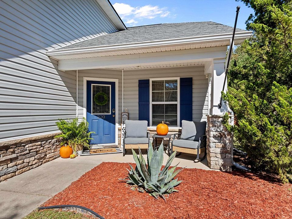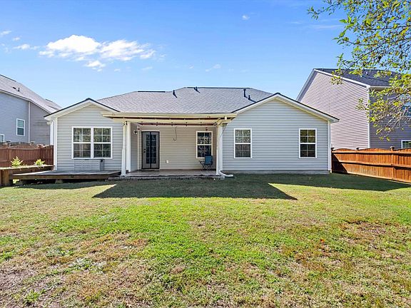 Introducing your ideal move-in ready home nestled in the heart of the desirable neighborhood, Hawkins Creek! From the moment you pull up, the curb appeal invites you in — clean lines, vinyl/stone exterior, and a welcoming front porch. Inside, vaulted ceilings and an open floor plan create a spacious, light-filled atmosphere. This well maintained home blends modern finishes with comfortable layout. Four spacious bedrooms provide room for family, guests, or a home office. Large living area opens into a well-equipped kitchen featuring an island/bar and pantry with sturdy wooden shelving! Split-floor-plan master suite with private bath, dual vanities, garden tub, and walk-in closet! Outside, the lot offers a fully fenced backyard with covered patio and deck, backing up to a wooded area and some fruit trees — ideal for outdoor living. Two-car attached garage with finished flooring and storage racks! Roof replaced in 2022, new LVP flooring throughout most of home (2022-2023). Disclaimer: CMLS has not reviewed and, therefore, does not endorse vendors who may appear in listings.