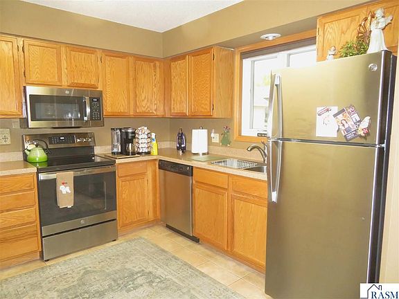 Very nice 2-story townhouse on a cul-de-sac street. Main level living option of using main floor bedroom as primary bedroom or as a main floor family room. Main floor laundry includes washer and dryer. Kitchen has u-shaped cabinets. Includes stove, refrigerator, dishwasher and microwave. Combination living room/dining area. Vaulted ceiling in living room. Half bath and 3/4 bath on main floor. Upstairs are 2 bedrooms and a 3/4 bath. Garage floor and sidewalk from front door to driveway have a polyurethane coating. Convenient location on Mankato Hilltop.