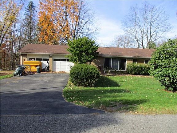 Sprawling 3 BR Solid Brick Ranch on Lovely 1 Acre Semiprivate Lot! This Spacious Treasure Offers Large Livingroom with Crackling Wood Burning Fireplace and Beautiful Built-in Shelves. Sliding Glass Doors in Formal Dining Room Open to a Spacious 11x33 Covered Deck with a Fabulous View! Large Eat-in Kitchen with Ceramic Tile Floor and Countertops. All 3 BRS are Generously Sized. Lower Level Game Room, Full 2nd Kitchen and Family Room with Walkout to Back Yard Featuring a 3 Stall Barn and Private Woods Beyond. Great For the Nature Lover! 2 Car Attached Garage. House Needs Some Work But Definitely a Diamond in the Rough! Roof Needs Replaced and Basement Bath Needs Redone. All Appliances Stay.