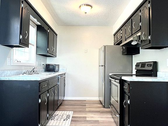 This home is conveniently located to Hopkinsville, Clarksville & Post. 2 Bedroom + 2 Bath Home with laminate flooring in the kitchen , living room, hallway & bathrooms. Kitchen has stainless steel fridge, stove & dishwasher. + small microwave. All on a wooded back yard lot!