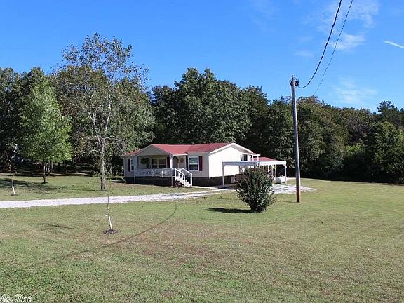 No. 01779 - Great starter home or a small weekend place. The double wide has 3 bedrooms, 2 bathrooms, and 1,614 square feet. It has been very well taken care of with new double pane windows installed, built on an extra utility room, back and front porches, carpet freshly cleaned, central heat & air, back up propane heat, and all appliances included. The home sets on 1 acre of level mow able ground plenty of room to build a shop or have a garden. There is a great view of the Ozark Mountains. $65,0000