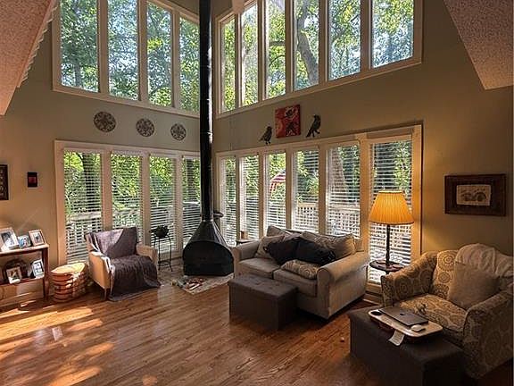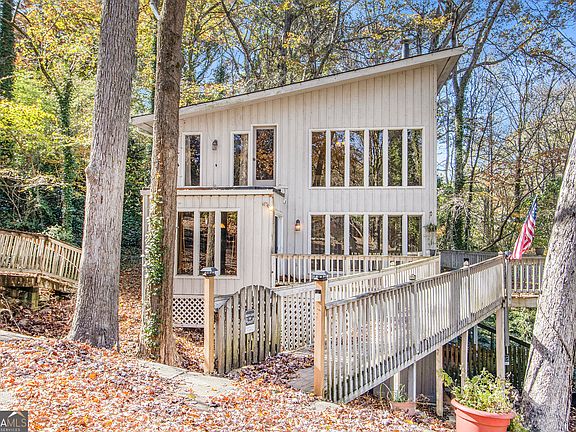 Nestled minutes from Lower Roswell Road in Marietta, this stunning contemporary home offers a serene retreat surrounded by mature trees and natural beauty. The breathtaking design features a two story family room with a striking wall of windows that flood the space with natural light and frame views of the wooded landscape. The open floor plan creates a seamless flow between the living, dining, and kitchen areas, perfect for both relaxing and entertaining. The finished basement adds a flexible living space. Set on a private lot beside Sope Creek, this 4 bedroom, 2 bath home combines modern architecture with the tranquility of nature, all within the highly sought after East Cobb School District. Optional Swim/Tennis available. Discounted rate options and no lender fee future refinancing may be available for qualified buyers of this home.