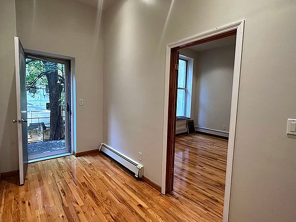 his massive one-bedroom apartment on the grand parlor floor is located in the desirable neighborhood of Clinton Hill, bordering Bedstuy. This remarkable living space features impressive attributes such as high ceilings, a charming fireplace, beautiful hardwood floors, captivating exposed brick walls, and convenient access to a peaceful backyard retreat. The apartment is furnished with modern appliances, seamlessly blending classic elegance with contemporary convenience. Situated in a prime location, residents can indulge in the neighborhood's highlights such as Playground coffee, Pilar Cuban restaurant, and the acclaimed Michelin Star restaurant Department of Culture all within close proximity. G Bedford Nostrand subway is close by as well as the LIRR, major bus lines and the AC Nostrand train.