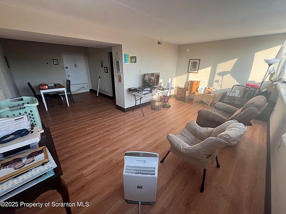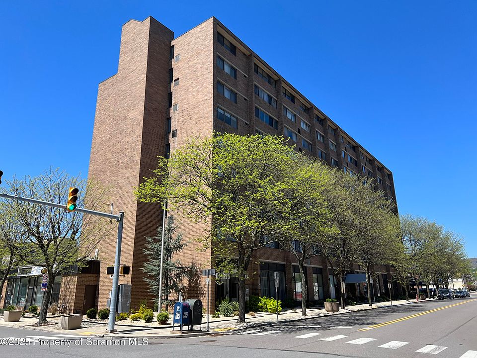 Enjoy the Amazing Views from your own home while living the simple life in the heart of downtown Scranton. Walking distance to restaurants, the mall, Univ. of Scranton and much more. This 5th floor corner 2 bedroom/2 bathroom is located in a secure building with two elevators and laundry rooms on each floor. Apartment also comes with a storage unit. Kitchen has been updated recently, new water heater installed in 2020 and new condenser unit installed in 2022. Optional parking garage located directly next to building with covered access. Monthly HOAs are $310.24 which cover trash removal, water and sewer charges and building expenses. There is an additional monthly roof assessment of $84.00 through December 2026. Apartment may be purchased for Investment Purposes and leased out. Building only permits one (1) pet per apartment which must be under 30 pounds.