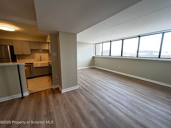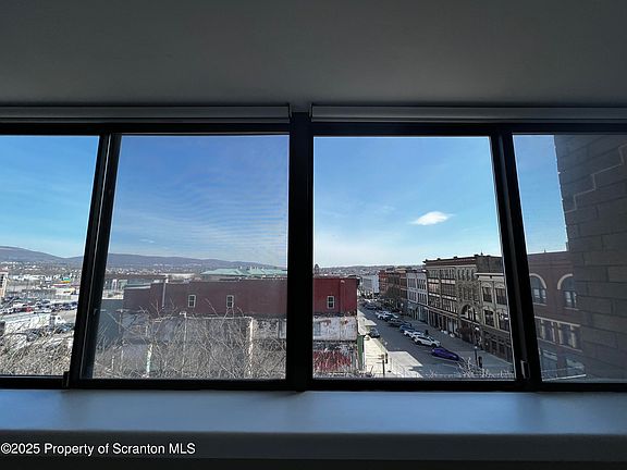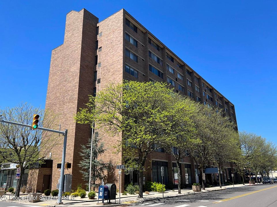 Enjoy the Amazing Views from your own home while living the simple life in the heart of downtown Scranton. Walking distance to restaurants, the mall, Univ. of Scranton and much more. This 5th floor corner 2 bedroom/2 bathroom is located in a secure building with two elevators and laundry rooms on each floor. Apartment also comes with a storage unit. Kitchen has been updated recently, new water heater installed in 2020 and new condenser unit installed in 2022. Optional parking garage located directly next to building with covered access. Monthly HOAs are $310.24 which cover trash removal, water and sewer charges and building expenses. There is an additional monthly roof assessment of $84.00 through December 2026. Apartment may be purchased for Investment Purposes and leased out. Building only permits one (1) pet per apartment which must be under 30 pounds.