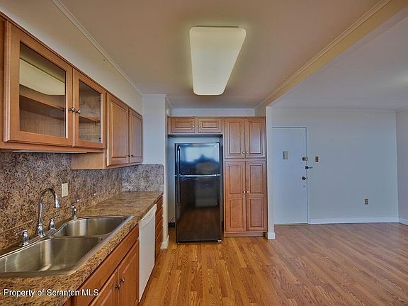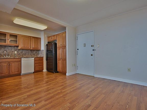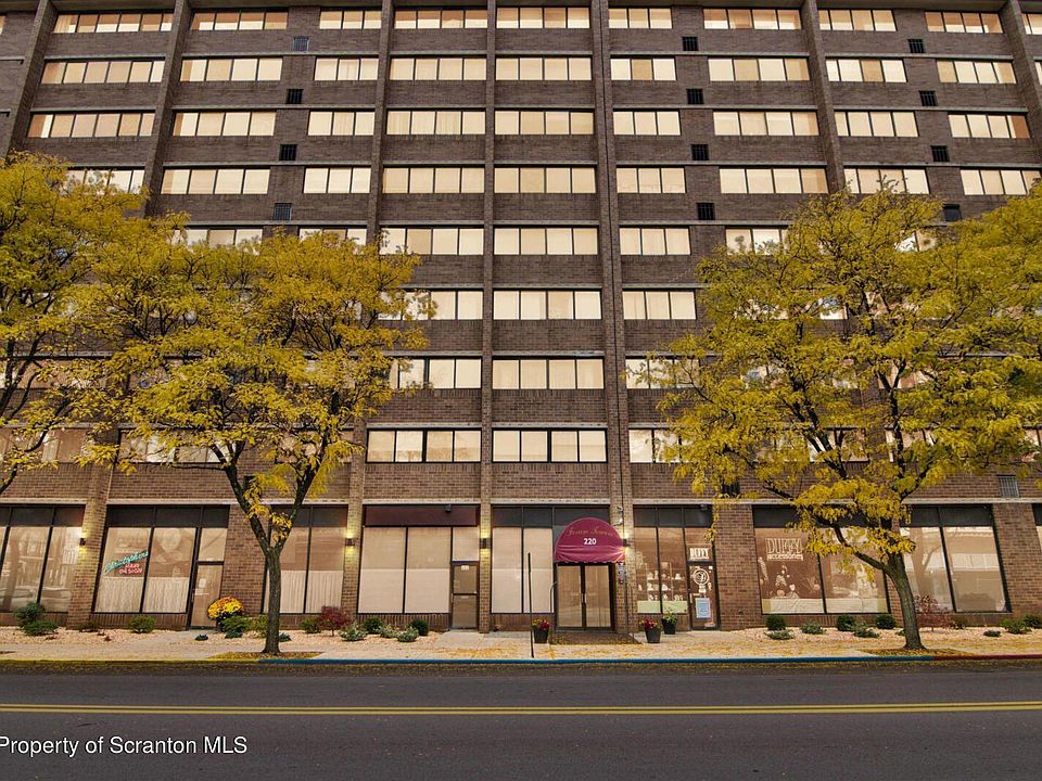 Penthouse corner condominium in the heart of downtown Scranton with amazing views. Renovated with all new flooring, newer kitchen with custom cabinetry, included appliances and opens to the dining room and the living room. Both full bathrooms have been renovated, the primary suite also offers a walk-in sized closet. Newer heating and cooling system as well as hot water heater. These units can be rented out, all prospective tenants are screened by the HOA. Walking distance to the Geisinger Medical College and University of Scranton.