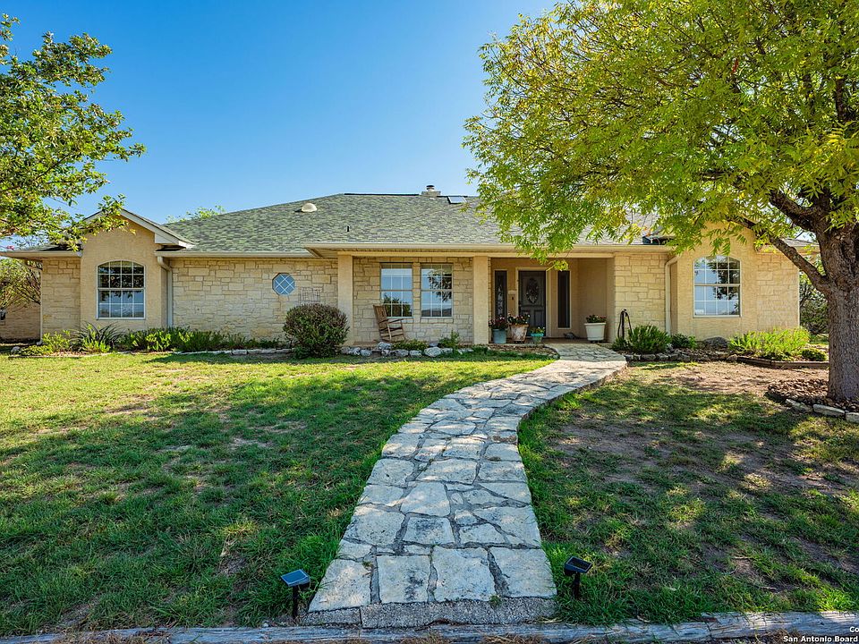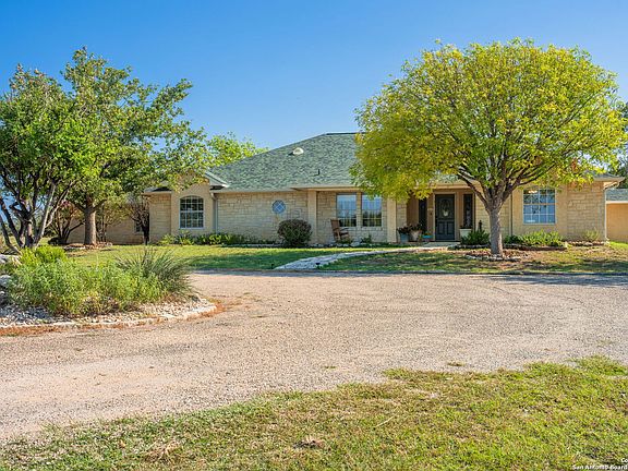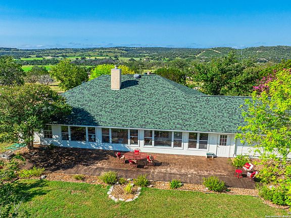 Gorgeous country homestead located south of Kerrville on Lower Turtle Creek Rd E, off of Highway 16. Immaculately kept ranch style stone home with 3 bedrooms & 3 full baths. Open floor plan with a main living area and 2 flex spaces that would be perfect for an office, music room or play area. Updated kitchen with shaker style cabinets, quartz countertops, a butcher block island and new Whirlpool electric range. Enclosed back porch area is a beautiful, light and bright 2nd living area with lots of windows and hardwood floors. Large primary bedroom has an ensuite bath w/ built-in linen closet, an exterior door and a large walk-in closet. The 2 guest bedrooms each have their own bathroom. There is a perfect view from the front of the house of a vineyard that is located across the road. Attached 2 car garage with additional storage. Carport located on the side of the home and storage shed located behind the home. Home sits off the road which provides the perfect spot to feel secluded in the country, but close to town and all of the amenities that Kerrville has to offer.