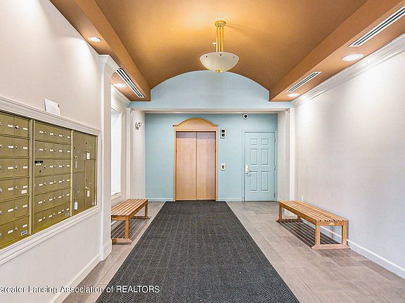 Beautifully updated and meticulously cared for 2 bed, 2 full bath condo walking distance to MSU campus and downtown East Lansing. Kitchen opens to living area with wall of windows & slider to private balcony. Master bedroom has spacious en suite, large walk-in closet, and a bonus flex room perfect for an office, personal gym, or hobby room. Spacious 2nd bedroom with separate full bath. Convenient washer and dryer in-unit. Home is truly move-in ready and has been professionally painted throughout with newer luxury laminate flooring. Updated appliances and mechanical include newer water heater, kitchen sink/faucet, and dishwasher (2020). Building has community gym, business center, social room, and secured storage locker in basement. Parking in attached parking garage can be rented from the City of East Lansing for $100/month. $527.26 monthly association fee includes heat, water, sewer, trash, exterior maintenance, liability insurance, high speed internet, basic cable from Direct TV and 24 hr access with a direct entrance from attached parking ramp. Parking is a separate fee at $100/mo through City of East Lansing.