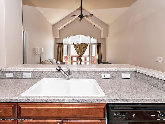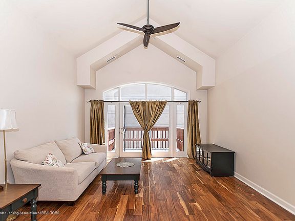 Stunning 4th Floor 2-bedroom, 2 full bath condo located in the heart of downtown East Lansing and steps away from the Michigan State campus. Conveniently located with easy access from the adjacent parking structure. 4th floor living offers open floor plan. Hardwood floors. Spacious kitchen with breakfast bar. Living room features vaulted ceiling and skylight to allow for lots of natural sunlight. French door opens to beautiful balcony. . Master bedroom includes master bath and large walk-in closet. 2nd bedroom comfortably fits queen sized bed with additional space for desk or dressers. Additional storage unit in lower level has shelves installed making storage easy. Convenient washer and dryer in unit. Building amenities include secured entrance, elevator, storage unit, exercise facility, media and entertainment center. The monthly association fee of $334. Includes heat, water, sewer, trash, exterior maintenance, liability insurance, high speed internet, basic cable .