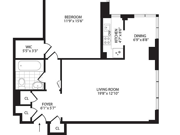Welcome to this spacious one-bedroom corner unit featuring a large bedroom, separate windowed kitchen with a dishwasher, a generous living room with a dining nook, and ample closet space.