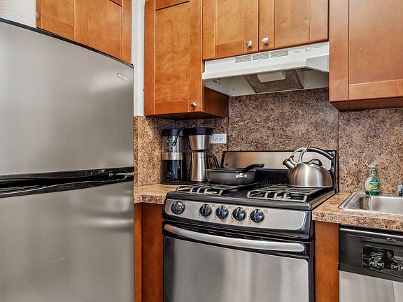 The building offers a full-time doorman, rooftop with WiFi and BBQ, updated lobby, and laundry.