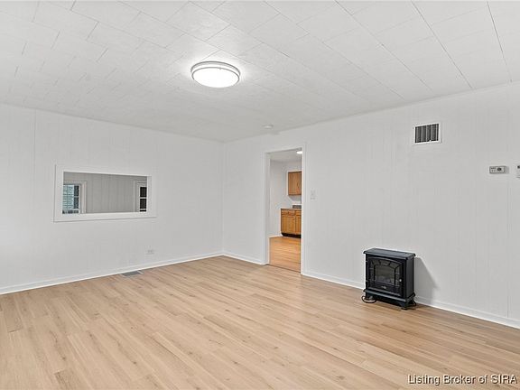 Cottage style home that has been recently updated inside and out, including a new roof and gutters, new flooring, new furnace, paint, some new kitchen cabinets, new refrigerator and range new stainless steel double sink w/Delta faucet, new hot water heater, new bath vanity top, faucet and toilet, new front door, new lighting throughout and new shutters. Ductwork has been cleaned by a local HVAC company. Conveniently located in the town of Hanover, across from Hanover College.