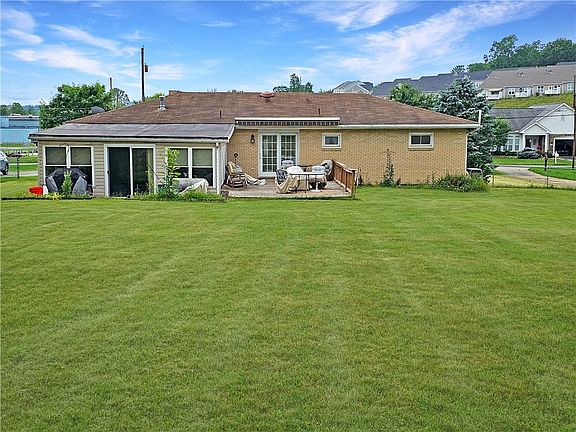 This spacious blonde brick ranch features an owner's suite, 4 bedrooms, 3 full bathrooms, gas fireplace, wood burning fireplace, 2 sheds and a fenced yard. The large sunroom and game room as well as the deck, concrete patio, level front and back yards, remote retractable awning, two sliding doors that lead to the back yard and double wide concrete driveway create the perfect home for entertaining friends and family. One bedroom, a full bathroom and a gameroom downstairs offers a separate living space for guests or anyone who claims it.