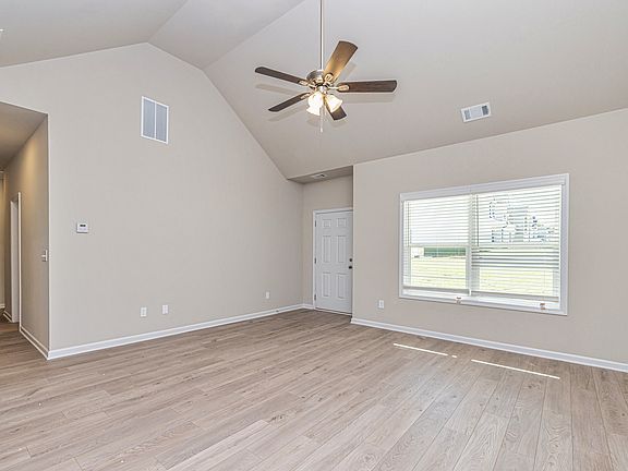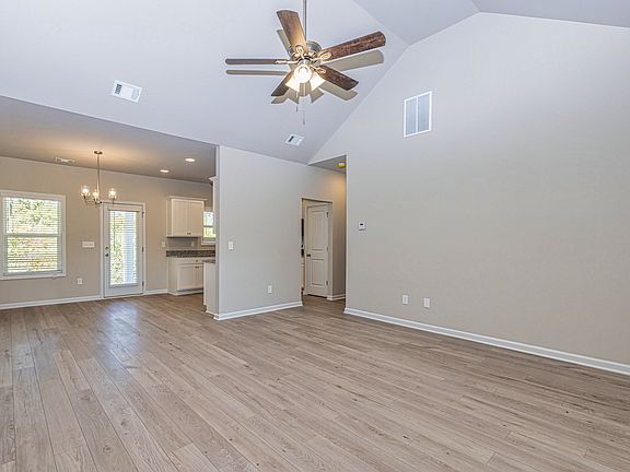At the heart of the home, the open-concept living area combines a generous living room with an optional fireplace, a bright dining area, and a thoughtfully designed kitchen featuring ample counter space and direct access to the rear porch perfect for indoor-to-outdoor living.
