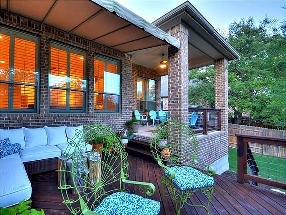 Outstanding 2-story home in Mesa Verde of Belterra backing to greenbelt with lots of extras! Pristine condition with crown molding, plantation shutters, Nest Thermostat & custom stone archway. Fabulous gourmet kitchen boasts beautiful granite center island, stainless appliances & planning station. Backyard retreat complete with a multi level deck with custom awning, a decorative pond, backyard landscaping with lights & miles of greenbelt views.