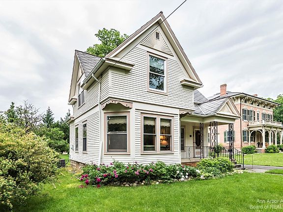 Walk to downtown from this beautiful turn of the century Victorian home that has been lovingly maintained. Hardwood flooring, solid pocket doors, plaster walls, and all original woodwork join seamlessly with the all glass conservatory 4 season addition. Enjoy the Super Deluxe Hot Springs Spa (or relocate to the outside) and just enjoy a light filled (and completely climate controlled additional living space with a spacious mudroom tiled with local made Motawi tile, Both the half and full baths are solidly tiled (mudset) and Sherriff Goslin Diamond roof shingles seem to last forever! They don't build homes like this anymore! Formal Living room, Spacious formal dining room and "parlour" or family room offer generous living space. Full basement with plenty of storage and full size was washer and dryer. Detached carriage style garage with original sliding doors fits 2 vehicles. Around the corner from Curtiss Park and just a few blocks to downtown you'll enjoy the Farmer's market Salt Springs Brewery and all the downtown restaurants and shopping. Just 15 minutes to Ann Arbor. Come take a look. SELLER OFFERING A CREDIT FOR WALLPAPER REMOVAL, OR TO HAVE WALLPAPER REMOVED PRIOR TO CLOSING