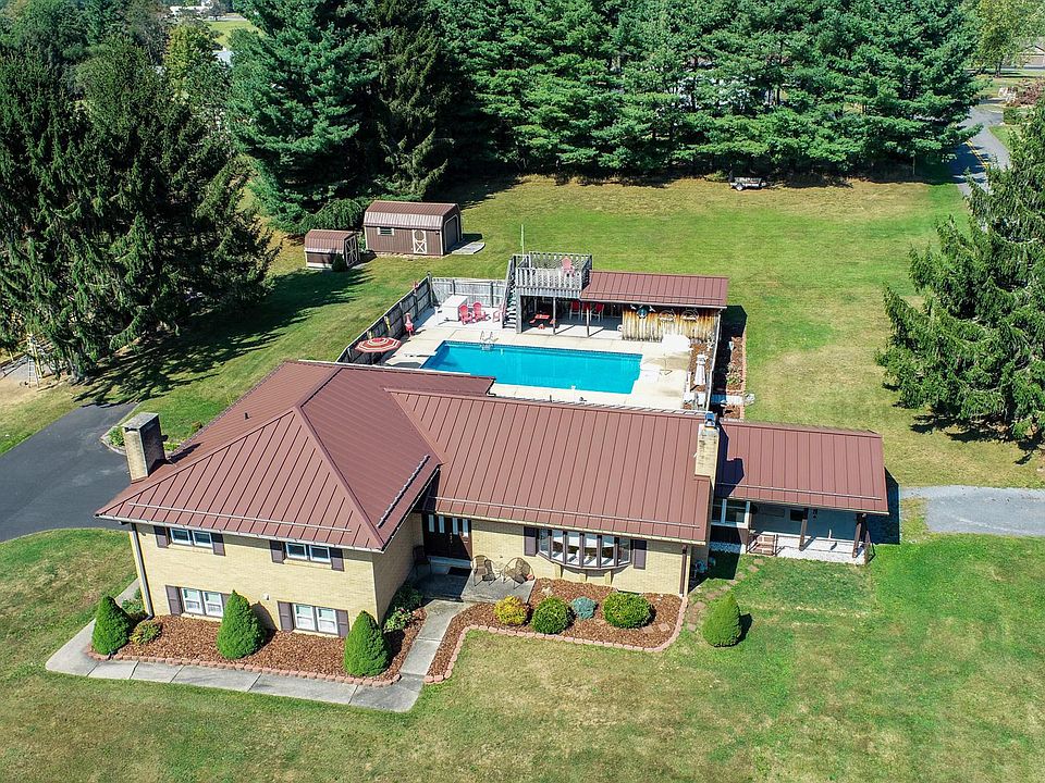 This charming traditional home in the desirable West Oakland area offers a perfect blend of comfort and style, while being close to schools and the hospital. With 4 spacious bedrooms and 2.5 bathrooms including a large primary suite, the layout is designed for both relaxation and entertaining. The inviting living area features a cozy brick fireplace, creating a warm ambiance for gatherings. The fully finished basement provides additional living space with convenient garage access. Step outside to enjoy your own personal oasis, complete with a fenced in-ground pool, kitchenette pool house, and a lovely roof deck that boasts stunning mountain views. The expansive lot of nearly an acre offers plenty of room for outdoor activities and gardening. Additional highlights include hardwood and carpeted flooring throughout, a traditional floor plan, and multiple patios and porches for enjoying the serene surroundings. With ample parking, including a driveway and attached garage, this home is ready to welcome you. Experience the perfect blend of indoor comfort and outdoor beauty in this exceptional property!