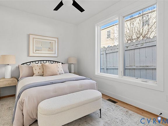 Nestled in Historic Shockoe Bottom, just blocks from Ironclad Coffee, 17th Street Market, Havana 59, Main Street Station, and so much more—all just moments from your front door—this sleekly designed, new construction townhome offers the perfect blend of style and convenience. Featuring 3 bedrooms, 2.5 baths, and 1,464 square feet of bright, open living space, this home showcases oversized casement windows, hardwood floors, abundant natural light, generous closet space throughout, and a private rooftop deck. Step inside to find two spacious bedrooms on the first level, each with a ceiling fan and oversized closet. The hall bath includes a large vanity with quartz countertops, tile flooring, and a walk-in shower with frameless glass, tile to the ceiling, and a transom window for added light. The second level features an open great room with hardwood floors, recessed lighting, and a comfortable den that flows seamlessly into the kitchen. The thoughtfully designed kitchen boasts quartz countertops and backsplash, white soft-close cabinetry, stainless steel appliances, and an oversized peninsula with bar seating—perfect for casual dining. Upstairs, the primary suite offers hardwood floors, a ceiling fan with overhead lighting, a spacious walk-in closet, and a luxurious en suite bath with tile flooring, a double vanity, and a frameless glass walk-in shower with a niche. Finally, head up to the rooftop deck—a stunning 12’x19’ patio facing southwest for beautiful sunsets and added privacy with tall dividing walls between units. Come see this exceptional home for yourself and experience all that Shockoe Bottom living has to offer!