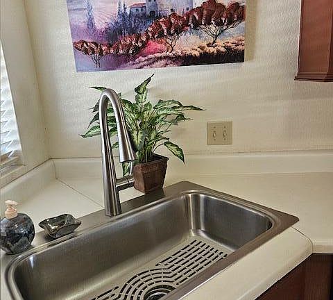 Beautiful Condominium! Fully Furnished and includes dishes, linens, & art decorator items. Private end unit, with deck overlooking one of the Community pools and grassy areas. Very light & bright, vaulted ceilings and skylights! Updated kitchen with refreshed cabinets, new appliances, stainless steel sink, new light over sink and in the dining area. Updated baths with new vanities, shower doors, toilets & refinished bathtub. New water heater, carpet, repainted accent walls, replaced smoke detectors. Renovations and repairs have been meticulously completed throughout sellers 14 years of ownership. Assigned covered carport in addition to the open parking areas between the buildings.