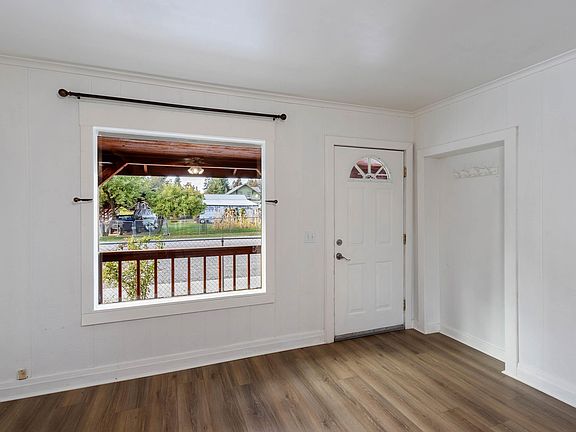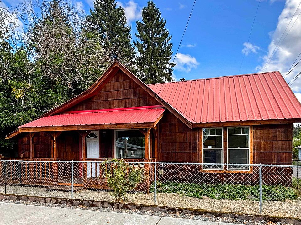 Clark Fork Idaho, ideal place for those seeking a quiet, rural lifestyle with abundant outdoor activities and a tight-knit community. This Charming 2bd 1bath Story and a half Home in the Heart of Clark Fork just a couple blocks from everything. Built in 1939, this 1,143 sq ft residence with detached garage blends vintage character with practical updates, offering a cozy retreat Ideal for full-time living, a rental investment, or a weekend retreat. Recently updated, elc. wall heaters, new paint and flooring throughout, bathrm shower & sink, few windows, front porch and back deck, front area sidewalk and parking area, New septic installed 2025. Great fully fenced back yard play in the grass and shade under the plumb trees.