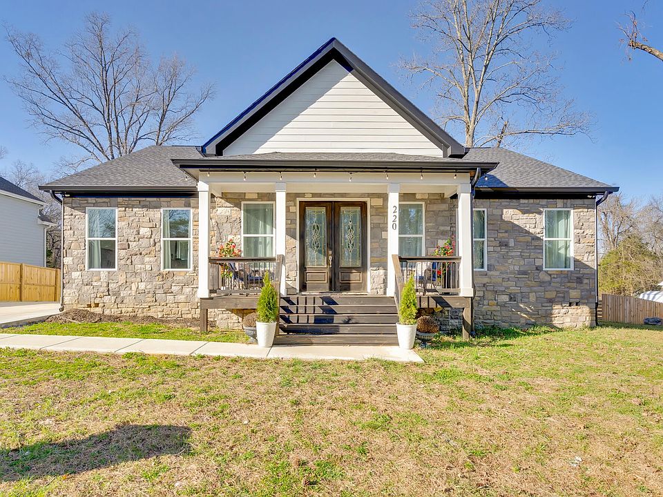 Your search for an OPEN FLOOR PLAN WITH A HIGHLY FUNCTIONAL KITCHEN and ONE LEVEL home with LAND is over! Welcome to 220 N Nick A Jack Road, located in a spacious lot (.41) and less than 10 miles from all Downtown Chattanooga and Lookout Mt. have to offer! Upon arrival, you will be greeted by a covered front porch adorned with metal spindles and wooden columns; this space is ideal for your rocking chairs to enjoy every season sipping on your favorite beverage. Step into your future living space under a 12-foot coffered ceiling through a set of French style wooden doors with stained glass. Hardwood flooring (LVP) extends throughout the ENTIRE HOME, as there is NO CARPET! This OPEN CONCEPT features a spacious dining area just before you make your way into the chef of the home's DREAM KITCHEN! This highly functional and well-crafted kitchen features a LARGE ISLAND WITH NO SINK, hooded vent, comfort height oven and microwave, and a large WALK IN PANTRY with CUSTOM SHELVES. Enjoy a window above your kitchen sink overlooking your private backyard! The PRIMARY BEDROOM is on the MAIN, and it is adorned by a double-trey ceiling, large lighted ceiling fan, as well as TWO SEPARATE WALK-IN CLOSETS with BUILT IN SHELVES. Relax and rejuvenate in your PRIVATE SHOWER ROOM with an impressive 7'10'' x 9' 3'' tiled shower with RAIN SHOWER HEAD, CUSTOM TILED BENCH, OVERSIZED GLASS PANEL/DOOR, and even a SOAKER TUB! There is also a separate water closet, double vanity and linen closet in this wonderful primary bathroom. THE MAIN LIVING AREAS AND ALL 3 BEDROOMS ARE ON THE MAIN LEVEL. An OVERSIZED BONUS ROOM is an ideal place for a dream mancave, work-out room, game room or all of the above in your oversized 4th bedroom upstairs; there is even added attic storage space. You will also enjoy a 25' 6'' x 22' 4'' side entry double car garage with extra room for all your essentials!